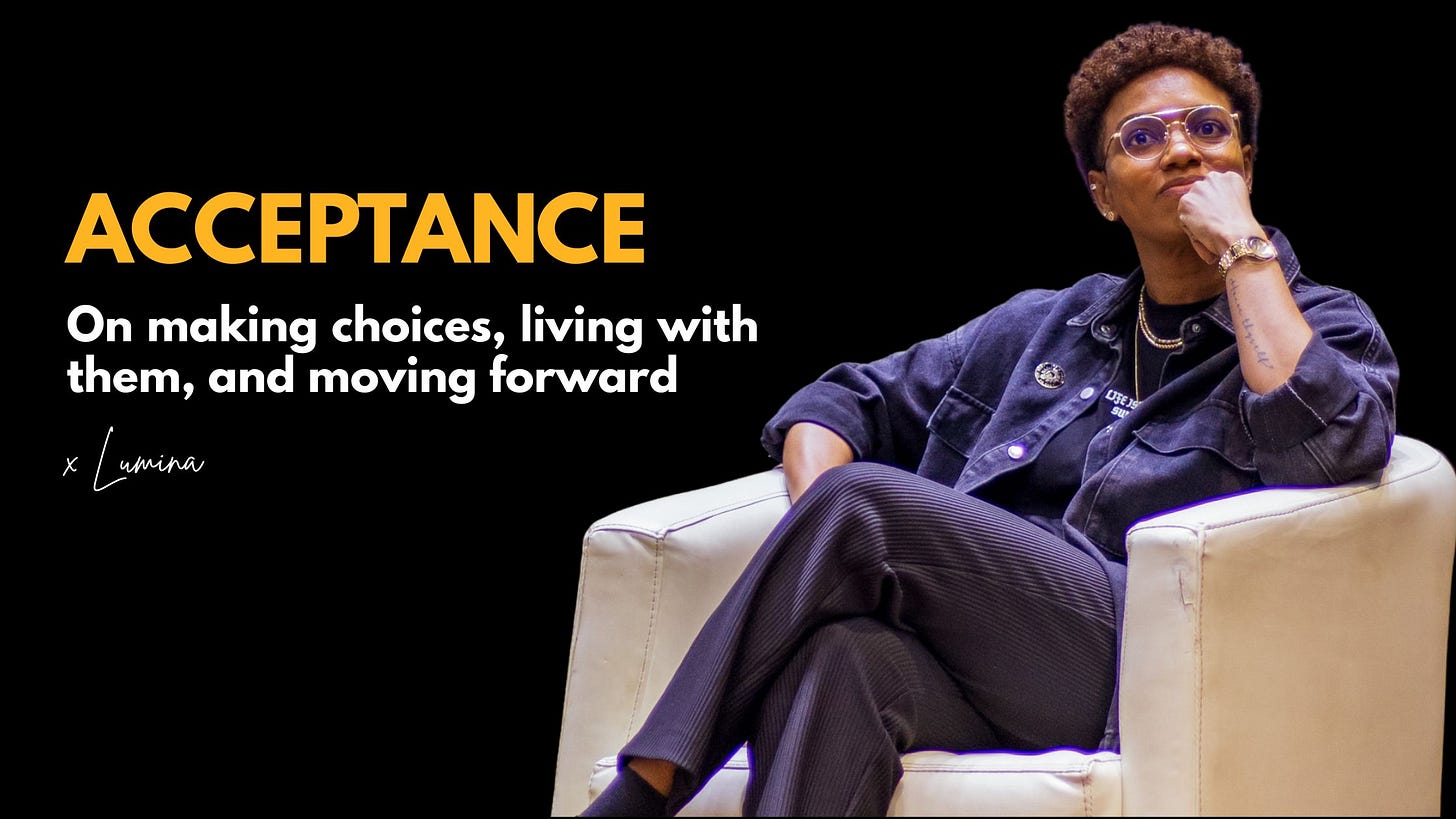 That’s what acceptance has looked like for me. Not giving up. Not being dramatic. Just telling myself the truth and letting it be what it is. Accepting that I made a decision, that it had consequences, and that I still get to move forward.